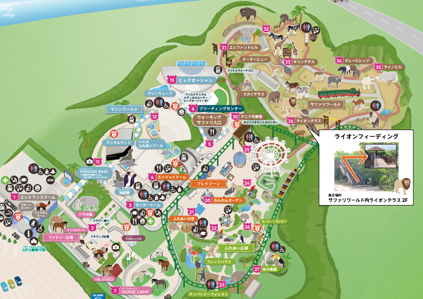 | 集合及び実施場所 | サファリワールド内ライオンテラス2階 ※集合場所案内マップはこちら |